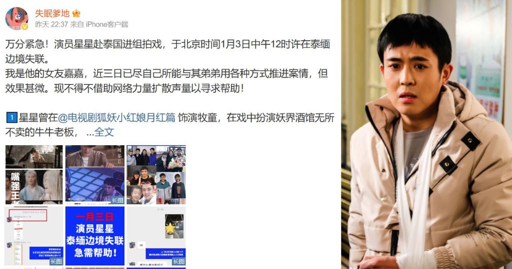 發帖者「嘉嘉」在微博帳號「失眠爹地」的帖文稱,王星早前在某演員接戲群得知有劇組招人而試鏡,成功後決定前往泰國進組拍攝。帖文稱,上周五凌晨他乘飛機從上海飛抵曼谷素萬那普機場後,乘坐由演員統籌安排的車輛,前往開機儀式現場。數小時車程期間,王星和「嘉嘉」一直保持聯絡,並曾多次發出所在位置信息。但自從中午開始,王星失去音訊,最後定位顯示他身在泰緬邊境。