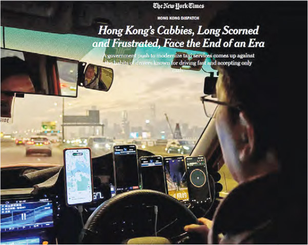 報道開首形容,改變的士司機習慣係全城最難嘅事,當中佢哋多只收現金係其中一種喺香港生活最奇怪嘅特色。報道訪問咗司機對修例建議嘅反對聲音外,亦講到喺香港坐的士嘅情况,記者留意到乘客習慣落車前準備好車費,免得落車慢激嬲司機,亦有學者認同大家落車都表現匆忙,以免阻住司機遲咗接下一張訂單。