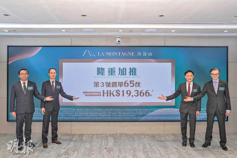 【明報專訊】正研究以發債或出售旗下資產以應對新鐵路開支的港鐵(0066),連續兩日就旗下鐵路物業開價,繼與會德豐合作的將軍澳日出康城GRAND SEASONS前晚約10時公布首張價單後,與嘉里(0683)等合作的黃竹坑港島南岸海盈山,昨首度以現樓形式推出65伙全新價單,折實均呎近2.2萬元,較一年半前首推折實均呎約2.8萬元低逾兩成,並貼近另一期數、去年開售的長實(1113)Blue Coast系列首批折實均呎約2.1萬至2.2萬元水平。最新價單提高折扣率及增設回贈予買家,兩房折實約950萬元入場,今日起收票,料新春前進行銷售。