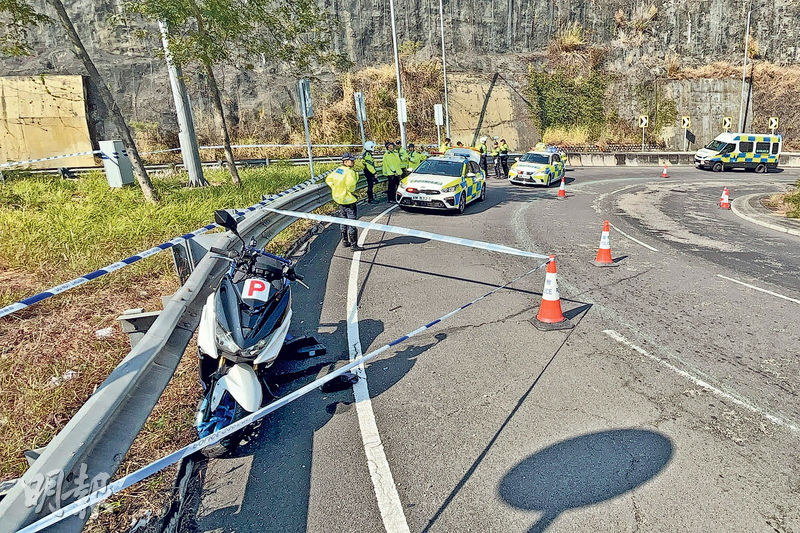 現場消息稱,相信電單車在彎位失控撞壆,人車分離倒地,車cam的記憶盒疑飛脫失蹤,警員事後在現場一帶草叢搜索。案件由新界南總區交通部特別調查隊跟進。警方呼籲,任何人如目睹意外發生或有資料提供,請致電3661 1446與調查人員聯絡。