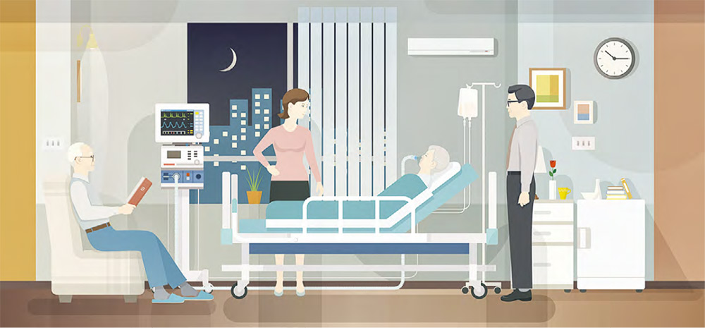 王婆婆入住的院舍也加入「安寧在院舍」計劃,院舍設有獨立的安寧房間,內有各式醫療設備如:醫療牀、監測器、氧氣機、抽痰機、陪人梳化牀等。當院友入住安寧房間後,親人長時間陪伴。院舍會獲得額外醫護人手,每天專責醫生會探視院友,兩更註冊護士會24小時留守,為臨終病人提供紓緩照顧。當院友離世時,醫生亦會到院舍簽發死亡證及火葬證明。