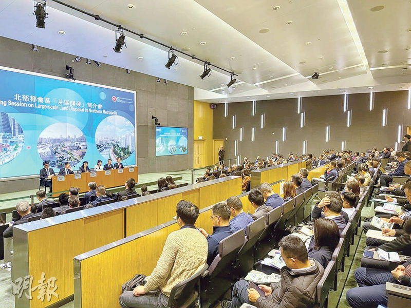 【明報專訊】發展局正就北部都會區三個「片區開發」試點,邀請發展商提交意向書,昨聯同地政總署和土木工程拓展署,在政府總部舉行首場簡介會,約100家企業或機構近200名代表參與,出席代表包括發展商、承建商、銀行、金融企業、創科企業等。