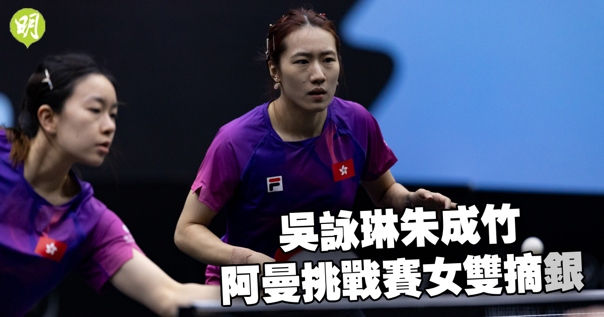 港隊乒乓女雙組合朱成竹/吳詠琳今日(17日)出戰WTT阿曼挑戰賽決賽,在先取一局之下,以局數1:3反負日本隊組合,飲恨得亞軍。港隊男單一哥黃鎮廷昨則在4強直落3局不敵日本隊猛將張本智和,與同吿4強止步的男雙組合關文皓/林兆恒雙雙摘銅。