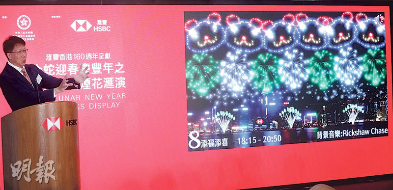 6個熊貓頭煙花初二維港綻放 匯豐總行會展外牆配合燈光匯演