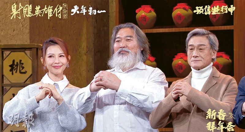 【明報專訊】改編自金庸武俠名著的內地賀歲電影《射鵰英雄傳:俠之大者》由徐克執導,找來人氣男星肖戰飾演主角郭靖,莊達菲演繹黃蓉。其他演員還有好戲之人蔡少芬、梁家輝、胡軍及吳興國等,陣容強勁。日前徐克率領肖戰、莊達菲、梁家輝及蔡少芬一同出席新片發布會,並提早跟觀眾拜年。大會準備了多個以「桃花酒燜雞」為名的盲盒,讓演員一齊打開,結果由蔡少芬抽中真正的「桃花酒燜雞」,她決定將之送給徐克,為對方送上好運。