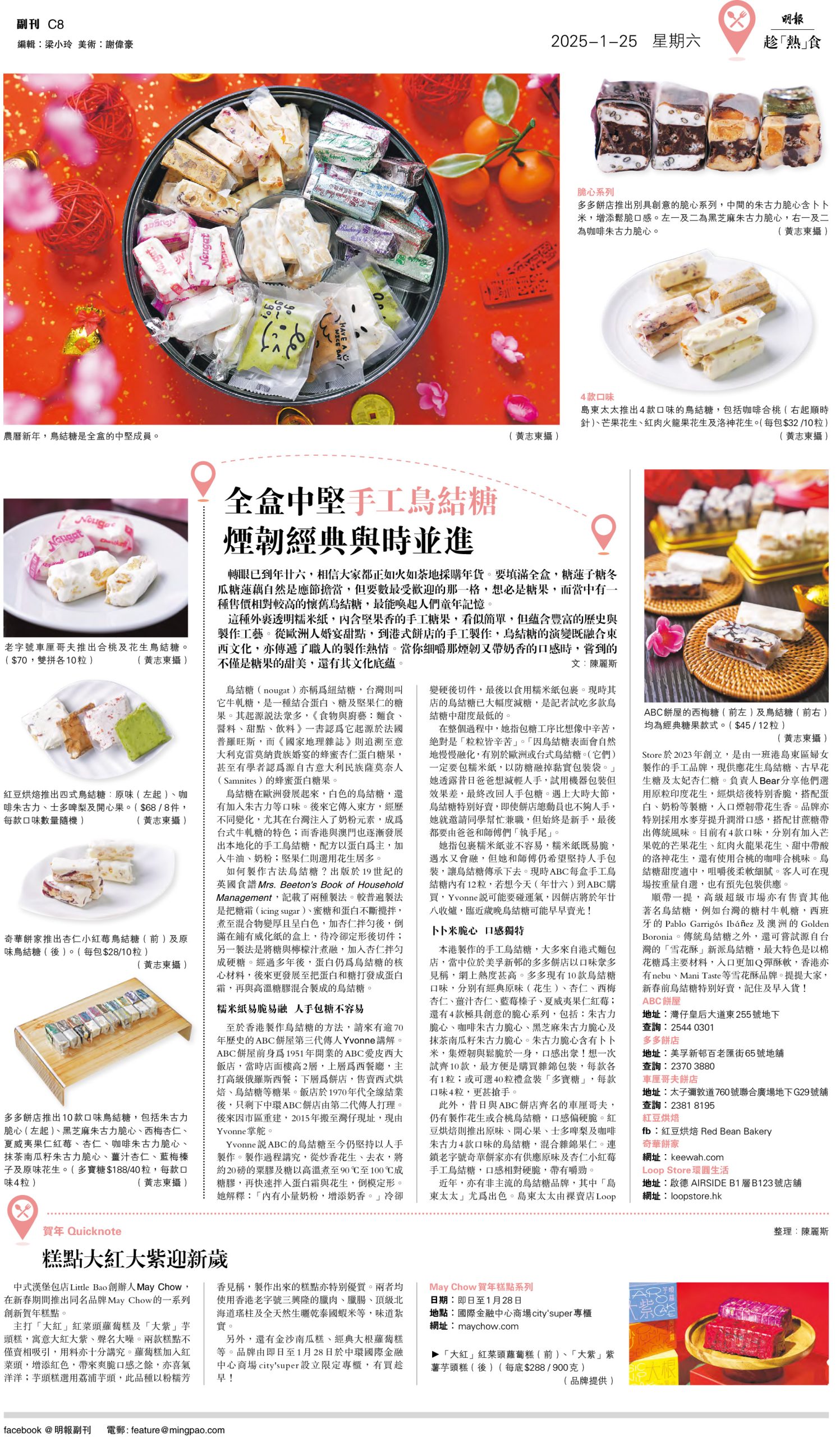 【明報專訊】轉眼已到年廿六,相信大家都正如火如荼地採購年貨。要填滿全盒,糖蓮子糖冬瓜糖蓮藕自然是應節擔當,但要數最受歡迎的那一格,想必是糖果,而當中有一種售價相對較高的懷舊鳥結糖,最能喚起人們童年記憶。