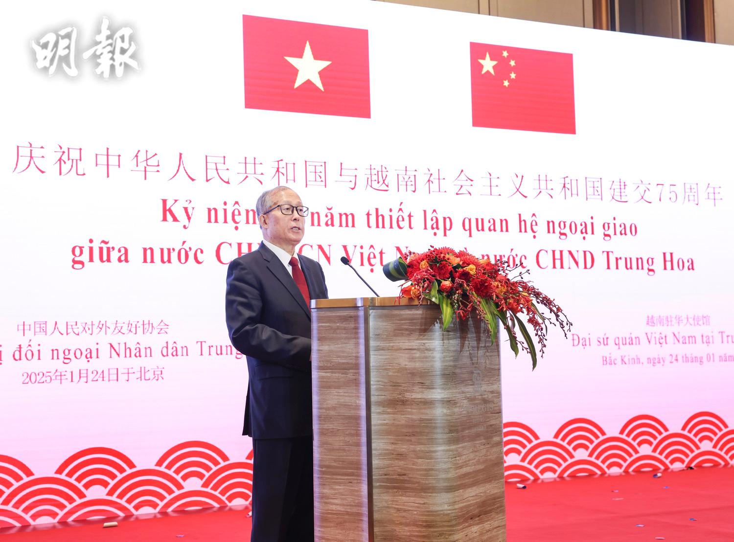即時兩岸 中越建交75周年 李鴻忠:友誼歷久彌堅 (00:09) 發佈於 12 個月 前 2025 年 1 月 25 日 By 明報 慶祝中越建交75周年招待會1月24日在北京舉行,中共中央政治局委員、全國人大常委會副委員長李鴻忠致辭時表示,建交75年來,中越友誼歷久彌堅;中方願同越方一道,在兩黨兩國最高領導人戰略引領下,秉持友好初心、牢記共同使命,攜手推進具有戰略意義的中越命運共同體建設,更好造福兩國人民。 招待會由全國對外友協和越南駐華使館共同舉辦,越南駐華大使範清平表示,願以建交75周年為契機,推動越中命運共同體建設不斷邁上新台階。(新華社) 相關文章:中越李鴻忠 Up Next 阻菲登鐵線礁同一天 中國允菲派船補給仁愛礁坐灘軍艦 (16:22) 不要錯過 公安部長:對電騙發起猛烈攻勢 狠抓電話卡治理 (01:02) 繼續閱讀 贊助商 猜你喜歡 李鴻忠:中俄是完善全球治理的建設性力量 (22:54) 政法委書記陳文清:希望中越提升打擊網絡詐騙犯罪 (22:14) 中越總理會面 李強:推動兩國全面戰略合作向更深層次發展 (23:42) 中越海警聯合巡邏北部灣海域 登臨檢查漁船教育漁民(多圖) (18:49) 習近平抵河內發表書面講話:中越結下「同志加兄弟」深厚友誼 (14:41) 中越將舉行邊境國防友好交流活動 (18:25)