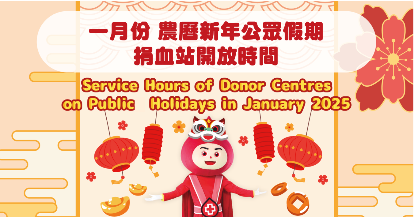 本港血液收集量持續不足,現時血庫存量已跌至極低水平。踏入冬季流感季節,公立醫院服務需求顯著上升,加上市民離港外遊,令血庫備受壓力。截至1月28日,O型、A型及B型血存量僅餘4日。農曆年假期間,以下捐血站以及流動捐血車繼續維持服務,市民不妨趁新年假期間去捐血。
