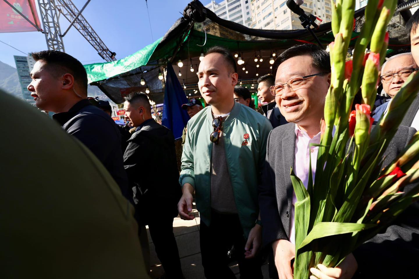 李家超行經一花檔時,即場花200元買下10枝劍蘭,稱喻意「十全十美」、「奮勇向前」。沿途有市民大叫「特首好靚仔」,又有人高叫「照顧吓市民、為市民著想」,並要求「唔好搞我哋啲市民、2蚊(乘車優惠)唔好郁。」