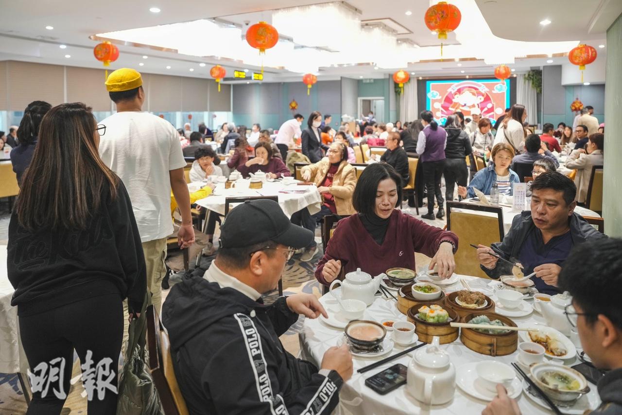 不少市民會在農曆大年初二吃「開年飯」。位於上環的酒家「糖心軒」今午(30日)1時許幾乎滿座,「糖心軒」董事長鄺鴻昆表示,酒家主要客源為本地熟客,未受北上消費影響,並預期今年農曆新年生意會較去年同期多一成至一成半。