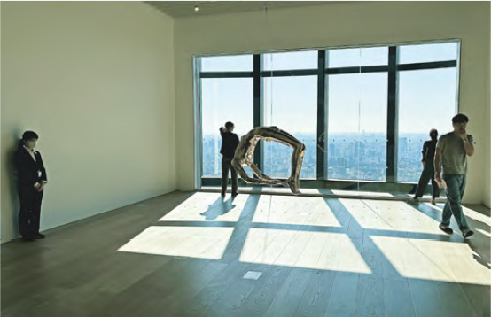 東京森美術館的Louise Bourgeois展覽結束前,我也過了去湊熱鬧。保安走動不算多,有時交換位置站立。即使大疫之後,他們仍戴上口罩,一如其他日本服務業工作者,很難從臉上看出多餘的情感。他們盡量避免觸及觀眾視線,讓我想起一種紀錄片的做法fly on the wall,不引人注目之下達成任務。Bourgeois一件雕塑作品臨近窗邊,東京的天際與陽光映入眼簾,有人將城市當成雕塑的拍照背景;有人不禁越過雕塑,居高臨下瞧瞧這座城市;唯獨個子很小的保安站於沒被陽光照射的暗處,一動也不動盯着那件吊起來的金色雕塑。我內心朝她喊出兩個問題:嘿,不會看膩嗎?你不會也想湊近窗邊看看風景嗎?