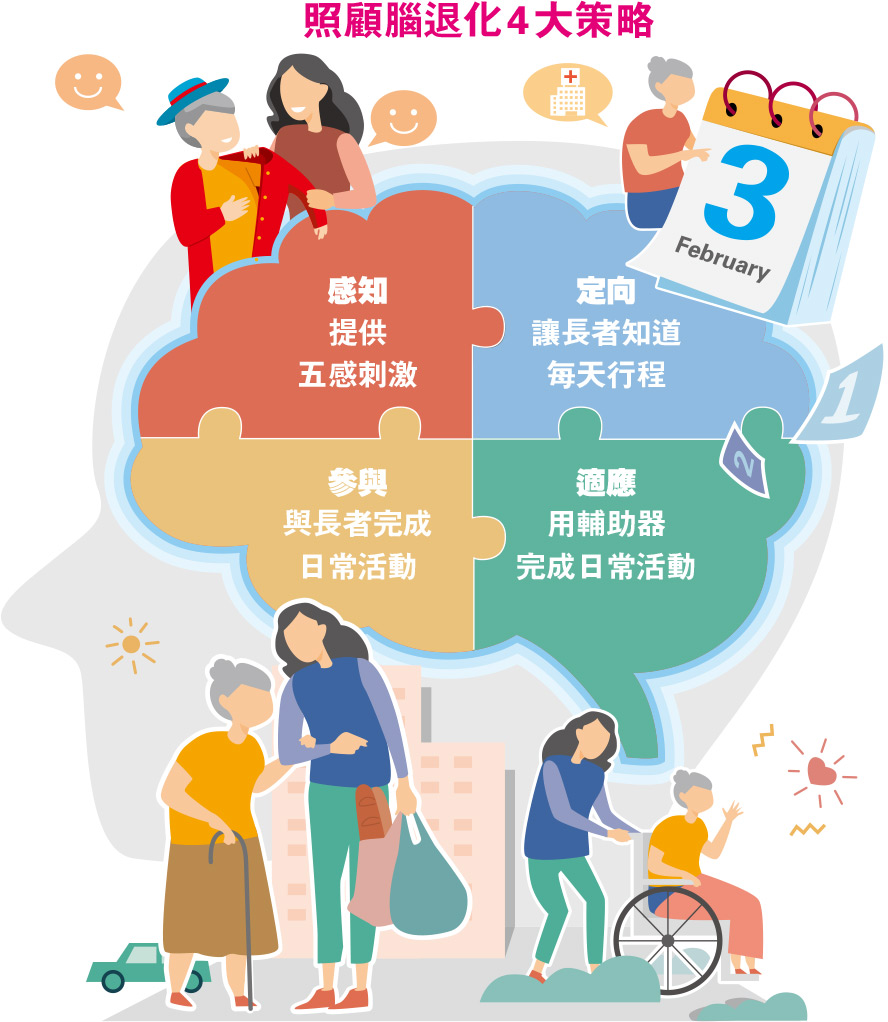 腦退化症患者自理能力逐漸減退,照顧責任落在家人身上。然而,擔起主要照顧責任的家人是「非正式照顧者」;沒有受過任何訓練,由簡單的扶抱、餵食,至較專門的服藥、營養安排,都面對各種困難。