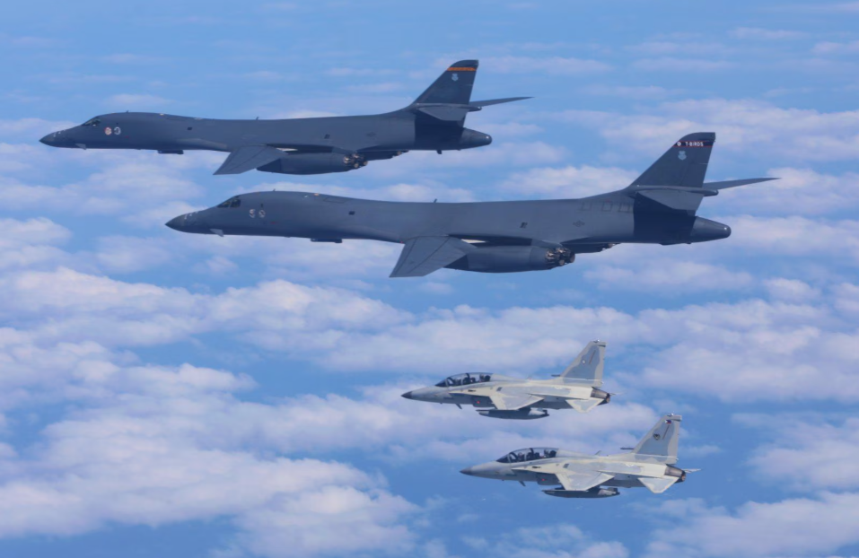 菲律賓空軍表示,菲方3架FA50戰機和美國兩架B1B遠程轟炸機參與了演習,雙方在南海上空相遇,巡航任務包括飛越黃岩島空域,菲空軍強調黃岩島是菲領土,「無論其他外國勢力採取什麼行動,我們都會繼續下去」。