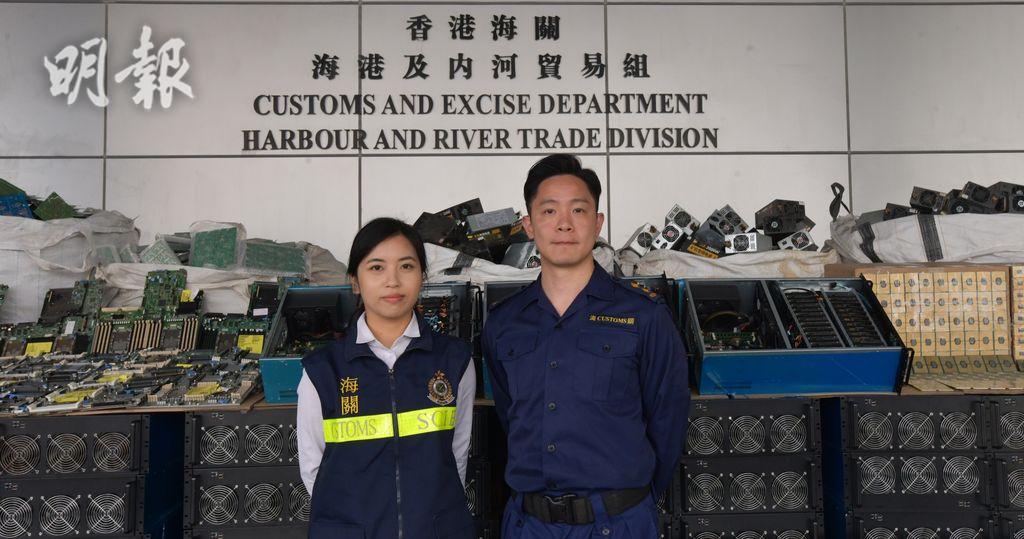 海關港口及海域科與有組織罪案調查科於上月23日展開聯合行動,打擊海運走私活動,鎖定一個準備出口到馬來西亞、報稱載有鋁物料的40呎長貨櫃作檢查。港口及海域科督察岑偉平表示,X光檢查後發覺影像不一,櫃內貨物種類雜亂,與報稱貨物結構密度不符,懷疑藏有走私貨物。當關員開櫃查驗時,發現申報的鋁物料放在近櫃門位置及貨物上層,經詳細搜查後,在貨櫃深處檢獲該批未列艙單電子貨物。