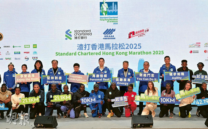 【明報專訊】渣打香港馬拉松明日舉行,大會昨午安排一眾本地及海外精英跑手亮相賽前記者會分享備戰心得。對於比賽氣溫預計下降至10℃,大會及本地跑手均呼籲賽前做好保暖應對寒流。