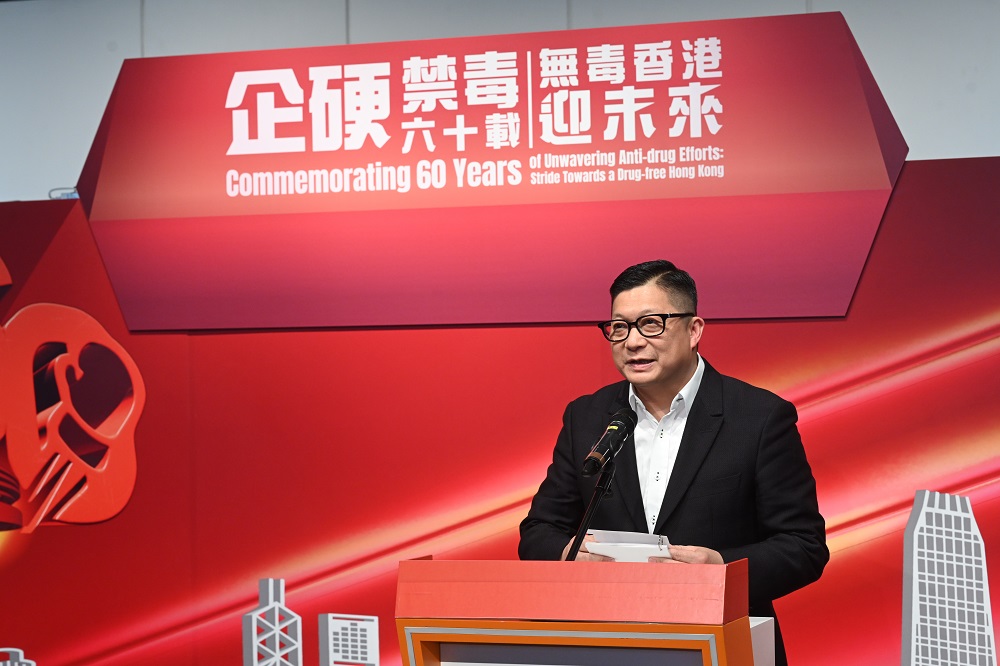 禁毒常務委員會(禁常會)成立60周年,與保安局合辦連串紀念活動。保安局長鄧炳強今日(7日)出席活動啟動儀式,致辭時重申政府將在下周五(14日)刊憲,將太空油主要成分依托咪酯列為毒品。屆時市民倘管有、吸食或販賣依托咪酯,需負嚴重刑責,執法部門已做好準備。