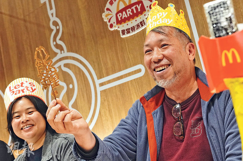 【明報專訊】曾在麥當勞兼職半年、關注勞工權益的藝術家程展緯兩周前被麥當勞解僱,昨日將本地樂隊My Little Airport《我們一起離開》一曲改編成《民間M記50周年主題曲》,在麥當勞舉辦「生日會」兼唱出訴求。他聯同4個工會及環保組織成立「我們的M記聯盟」,盼收集員工及市民聲音,向麥當勞發聲。他說「勞工是有權利表達自己的聲音,這一步我們無法退讓」,促請麥當勞恢復「飯鐘錢」,正視員工福利。