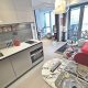 另一示範單位,參考第1A座18樓H室搭建,實用403方呎兩房間隔,發展商提供一個「清水房」作展示,並搭建同款、經改動兼連裝修的示範單位。設計師將連裝修單位,由兩房改為半開放式設計,擴大室內空間感之餘,再利用高樓底優勢,在寢區位置升高地台增加收納量,另一邊設工作間及吧枱,享受寫意悠閒的生活。