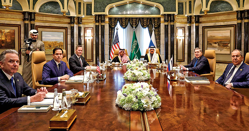 【明報專訊】美國與俄羅斯官員周二(18 日)在烏克蘭及歐洲盟友缺席之下,於沙特阿拉伯首都利雅得舉行4.5小時閉門會談,重點放在如何結束烏克蘭戰爭以及恢復美俄關係。與會的美國國務卿魯比奧表示,雙方達成4項原則,包括恢復美俄駐華盛頓與莫斯科外交代表團正常運作、指派高層談判小組以推動可持續並獲各方接受的烏戰解決方案、討論停戰後的地緣政治與經濟合作,以及與會代表將持續參與談判確保進程富有成效。霍士新聞引述消息報道,美俄先建立了合作基礎,並正就烏克蘭和平協議條件談判,提出的談判框架可能包括停火、在烏克蘭舉行選舉、簽署正式和平協議這3個階段。多名外交消息人士透露,強制烏克蘭舉行新一輪選舉可能成為和議的重要條件。
