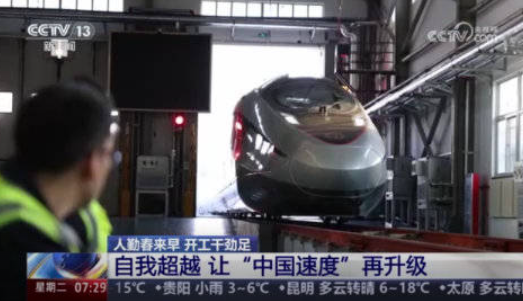中國鐵道科學研究院機輛所副研究員陳璨表示,「重量減輕了,在減輕的時候還要保證它的強度不會降低,甚至還要提高一些,因為它速度更高了。就跟人一樣,你要瘦、又要足夠壯。一個是結構變化,一個是材料的變化。」(央視)