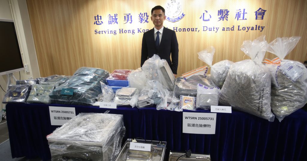 將軍澳警區特别職務隊經深入調查,鎖定新蒲崗一工廈單位被用作毒品儲存及包裝中心。昨晚(19日)探員發現一名男子離開目標單位,立即上前截查,在其身上搜獲9克大麻花,於是以販運危險藥物將他拘捕,並押到涉案單位搜查,再檢獲約24公斤大麻花及一批包裝工具,包括3部大型抽真空包裝機、封口機、電子磅及大量鋁箔包裝袋。警方再以販運危險藥物罪拘捕該名男子,行動中檢獲的大麻花總值約610萬元。