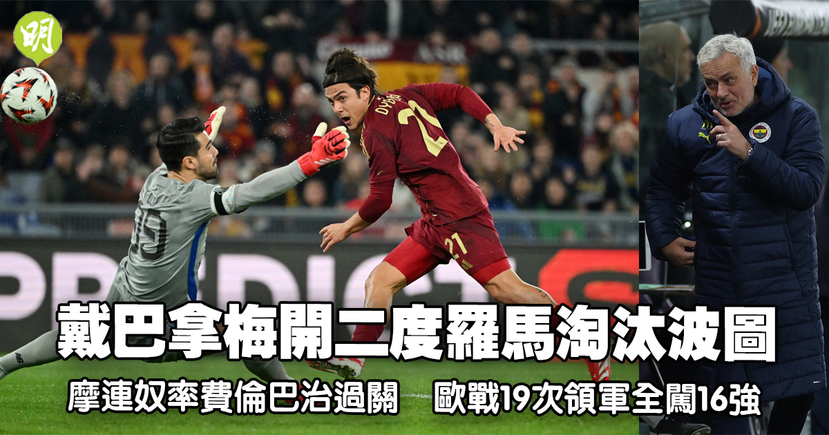 歐霸附︱戴巴拿梅開二度羅馬淘汰波圖 摩連奴率費倫巴治過關 歐戰19次領軍全闖16強 (17:50)