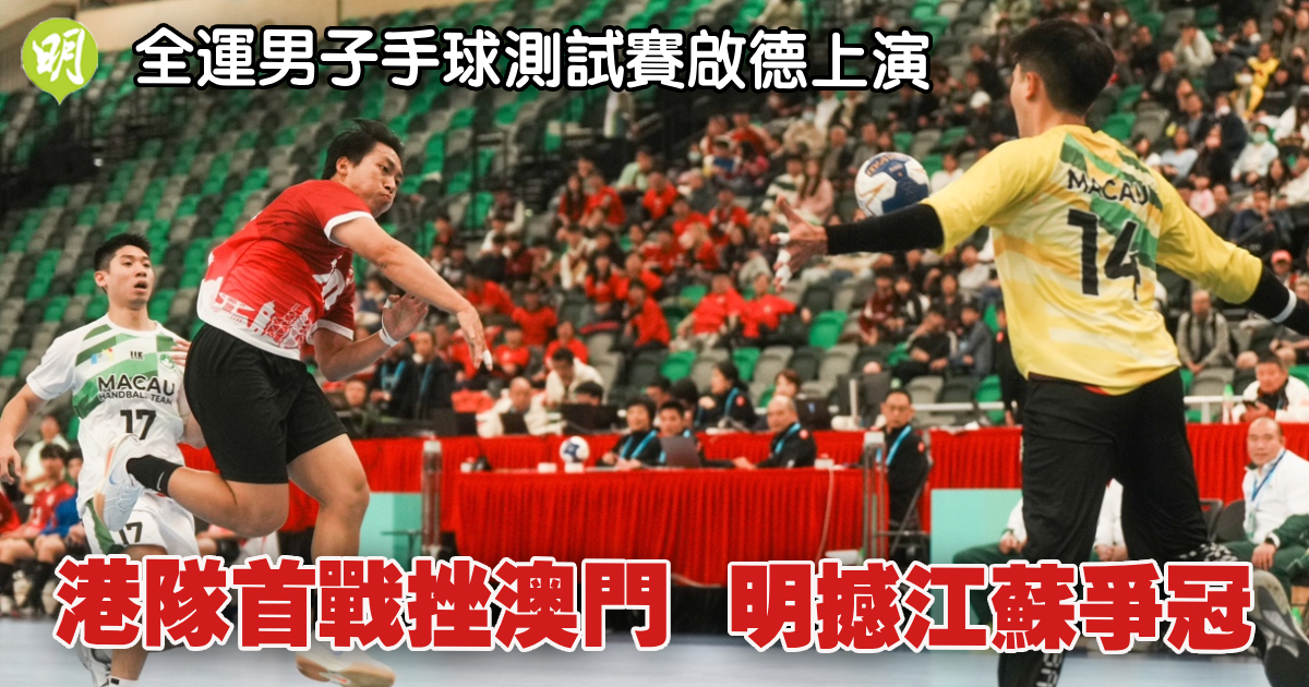 粵港澳全運男子手球測試賽今午(22日)起一連兩日在啟德體藝館展開,乃啟德體育園首次舉行全運測試賽。東道主港隊首戰憑簡翊暉攻入全場最高7分,以及陳浩諺下半場獨取6分,以33:19擊敗澳門隊,明午3時45分與江蘇隊爭冠。