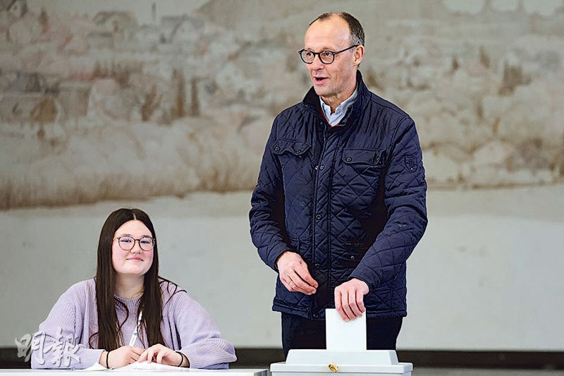 【明報專訊】德國大選在香港時間今天凌晨結束,民眾在經濟不景、非法移民湧入、俄烏戰爭發展與美歐關係等內外憂慮下投票。選前民調顯示有望成為下任總理的基民盟/基社盟(CDU/CSU)候選人默茨(Friedrich Merz),在選舉前夕承諾一旦當選,將成為在歐盟「強而有力的聲音」。