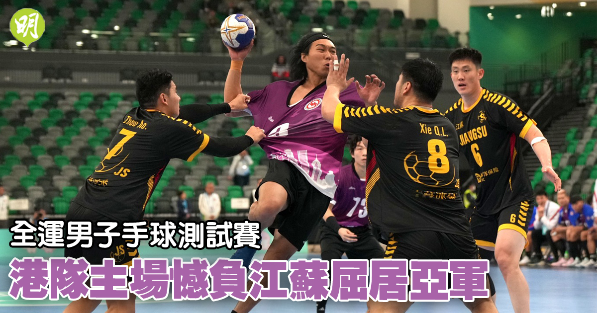 粵港澳全運男子手球測試賽今午(23日)在啟德體藝館上演次日賽事,東道主港隊在決賽面對爭取全運五連霸的勁旅江蘇隊,下半場一度奮發力追下,終以20:28憾負屈居亞軍。廣東隊季軍戰則以42:20大破澳門隊。
