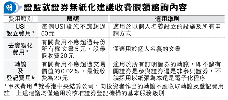 證監倡無紙化3類收費設上限 USI戶口限50元