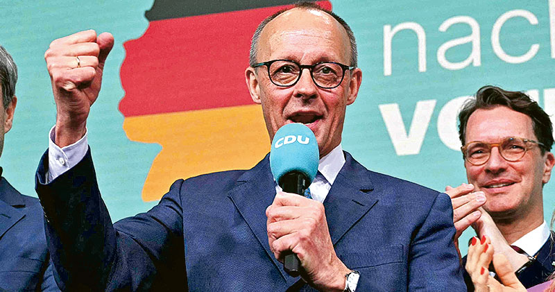 【明報專訊】德國周日(23日)舉行國會大選,初步結果顯示,親歐中右派的基民盟/基社盟(CDU/CSU)以28.6%得票率排行第一,但遠不足以單獨執政,其總理候選人、基民盟主席默茨宣布勝出大選,呼籲盡快籌組新政府,但表明拒絕與得票大增10個百分點、躍升成第二大黨的極右德國另類選擇黨(AfD)共同執政,他昨稱,打算與中間偏左的社民黨合組政府。默茨選後批評美國特朗普政府對歐洲命運「漠不關心」,矢言上台後將協助歐洲自強,實現國防獨立於美國,他日前亦表示歐洲需要擁有自己的核保護傘。分析認為,默茨及其政府勢將面對國內極端勢力和美國的內外夾擊。
