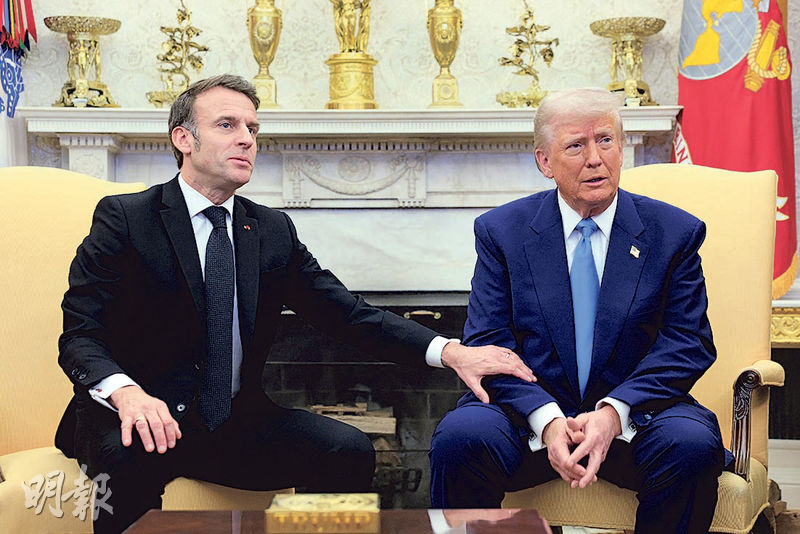 【明報專訊】法國總統馬克龍周一(24日)在白宮會晤總統特朗普,兩人表面相處融洽,但就結束俄烏戰爭卻各說各話。當馬克龍多次形容這次與特朗普的會談是「轉捩點」,強調要有對烏克蘭的安全保障,特朗普的立場並無大變化,也沒就安全保障接腔。