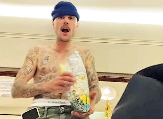 【明報專訊】加拿大樂壇天王Justin Bieber去年8月與名模太太Hailey榮升父母,迎來兒子Jack Blues,其後爆出P.Diddy涉嫌性侵事件,出道不久與對方過從甚密的Bieber被翻出各種舊聞,自此Bieber每次出現均被指精神萎靡,最近更身形暴瘦,有傳聞指他再染吸毒惡習,前日其經理人嚴辭否認。不過Bieber昨日上載短片到社交媒體,只見他赤裸上身,手執一包零食,在鏡頭前手舞足蹈,旁邊還有一名正在吸煙的朋友,兩人一邊rap歌,Bieber所唱的內容更提及「我很high,就像一個壞蛋」,歌詞疑似與吸毒有關,再次惹來網民熱議他到底是否故態復萌,再染惡習,不少人勸他接受治療,創造適合環境讓兒子健康地成長。