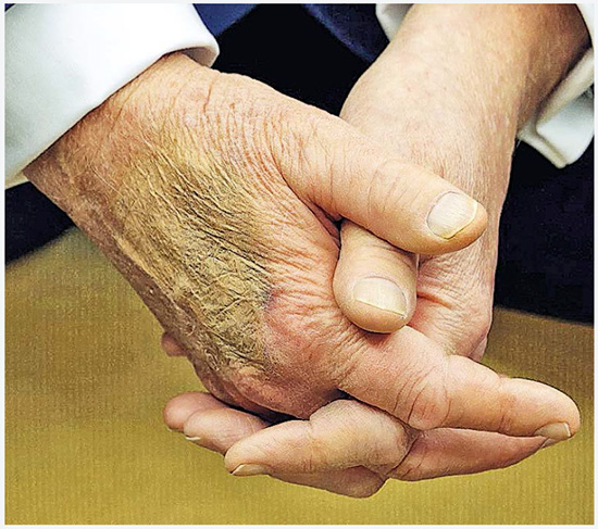 【明報專訊】美國總統特朗普周一(24日)在白宮會見法國總統馬克龍期間,被發現其右手手背有一大塊似乎有用化妝品掩飾過的「黑斑」(圖)。這惹起了民眾對其健康的揣測,例如懷疑是靜脈注射或是服了薄血藥造成,還有些人相信那是老人斑,或者是跟馬克龍握手「太用力」所致。不過,白宮新聞秘書聲稱那是「經常握手」衍生的瘀青:「特朗普總統是人民代表,他每天會見的人和握手,比史上哪位總統都多。」78歲的特朗普是歷來上任美國總統最年長的一人,他去年12月受訪時曾矢言會公開其完整的體檢報告,但至今一直未有落實。美國全國廣播公司表示,特朗普於去年8月和11月,右手也曾被發現發紅或瘀青。