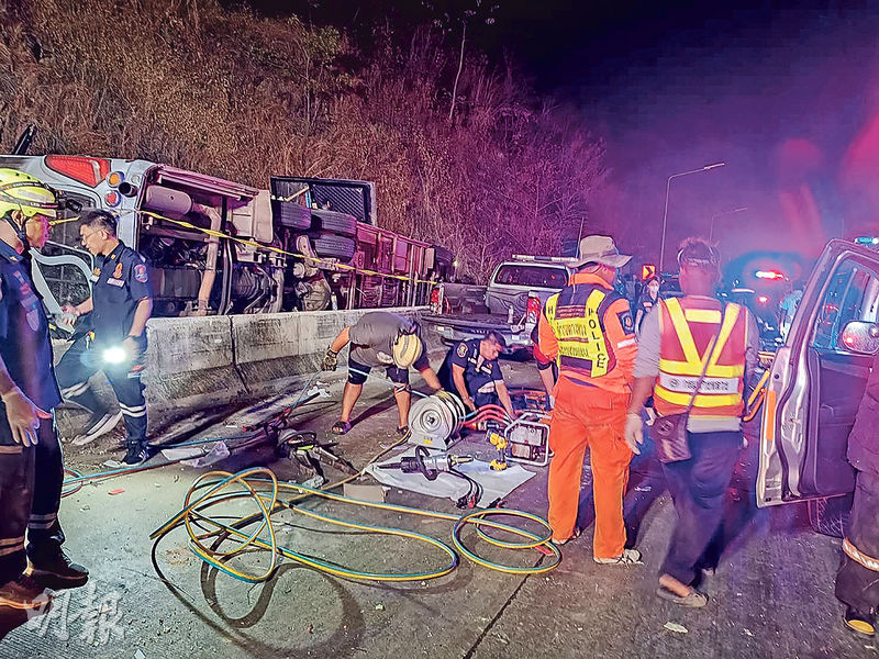 國際 泰旅巴疑煞車失靈翻側18死 發佈於 8 個月 前 2025 年 2 月 27 日 By 明報 【明報專訊】泰國東部巴真府周三(26日)發生旅遊巴士翻側意外,釀最少18死、31傷。圖為救援人員搶救失事巴士內傷者。警方稱肇事巴士有兩名司機,載有47名乘客,主要是考察團成員。凌晨3時左右,巴士從汶干府開往羅勇府,在曼谷以東155公里的考索恩山下坡時失控翻側掉入溝渠,17人當場身亡。警方稱可能是巴士煞車失靈肇禍。該國報章指失事位置山坡陡峭常生意外。 (路透社) 相關文章: Up Next 歐盟對俄制裁擴中港企業 中方抗議 不要錯過 大阪世博4.13開幕 售門票未如理想 繼續閱讀 贊助商 猜你喜歡
