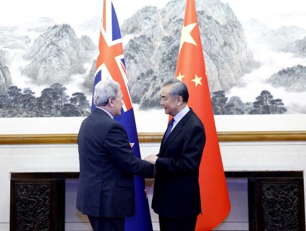 中共中央政治局委員、外交部長王毅今天(26日)在北京同新西蘭副總理兼外長彼得斯舉行會談。王毅表示,中新關係保持健康穩定發展,長期走在中國同西方國家關系前列,創下多個「第一」。中方願同紐方一道,落實兩國領導人重要共識,密切戰略溝通,發揚「爭先」精神,推動中新全面戰略伙伴關係繼續沿着正確軌道向前發展。