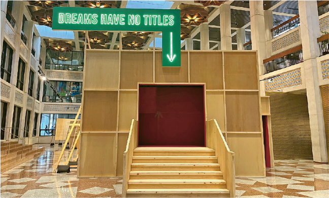 最能表現到藝術家結合多元文化及自身的感受,有裝置作品Dreams Have No Titles。觀者可以走進仿古的戲院場景觀看差不多半小時的錄像作品。此作啟發自阿爾及利亞的電影資料庫。影片中她將其人生的重要時刻結合歷史事件,穿插着法式阿爾及利亞前衛電影情節。影片尾段的場景設在藝術家於1980年代在倫敦的家,她正與好友談起在倫敦生活時遭受種族歧視的經歷。Zineb對於文化身分的困惑及探索,令我想起正在英國成長的港人後代。不知他們長大後會否與藝術家一樣,有着身分的困惑及對香港的事感到好奇?站在遠處觀照自身的文化根本,可能比身處其中看得更實在。