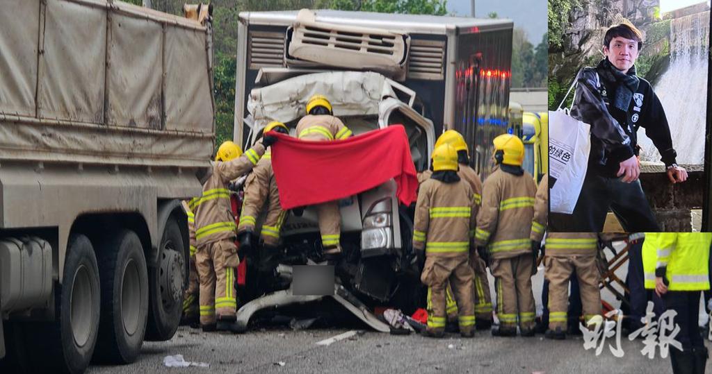 元朗公路近十八鄉交匯處今晨發生7車「串燒」車禍,當中冷藏貨車撞向泥頭車尾,再遭私家車猛撼。消防花約一小時,將重傷昏迷貨車司機、由形同廢鐵的駕駛室救出,惟送院不治。為一家四口經濟支柱的貨車司機,幼子得悉事件,哭稱「好掛住爸爸」。