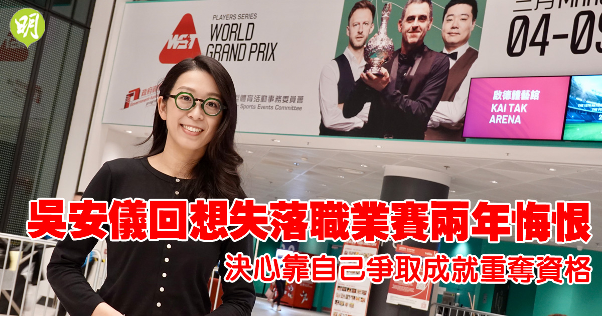 香港「四眼Cue后」吳安儀日前落實相隔兩年重返世界桌球巡迴賽(WST),這名港將今日(28日)接受本地傳媒訪問,回想當年失落WST資格、要由其他球手主宰自己命運的悔恨而感觸起來,最後決心靠自己爭取,成就如今重返職業賽。