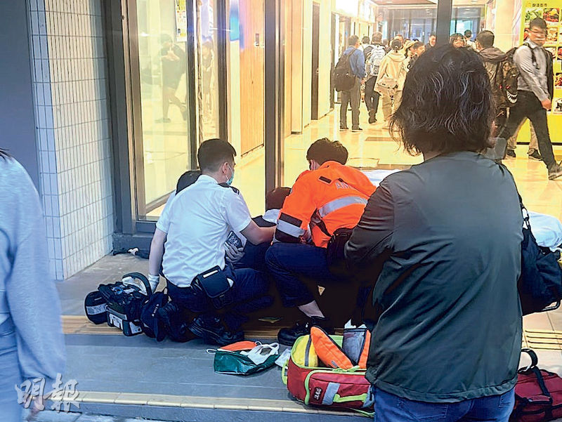 張先生向本報稱,前日傍晚6時許途經現場,當時已是事發後10多分鐘,有目擊意外的途人向他憶述事發時老婦「砰」一聲撼向玻璃,隨即跌倒,後腦位置着地流血。