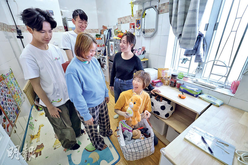 【明報專訊】沿着僅容一人通過的窄長樓梯走上三樓,再小心避過走廊兩壁鞋架上的雜物,門內是泰國人Nana一家四口的200方呎居所。這個位於九龍城的劏房,小小空間過去被等同成人身高的殘舊儲物櫃填滿,各種日用品如口罩、調味料等被隨意擺放,玩具散落一地。面對堆積如山的雜物,Nana去年主動向社企求助,經評估後被納入市區重建局「升級再造」家居活動13個受惠家庭之一,獲贈度身訂做的家具,並由專業整理導師協助整理家居(見另稿)。經歷半年空間大改造,Nana重見整潔光亮的單位時笑得燦爛,「回家都開心點!」