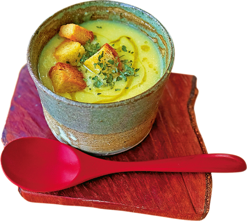5.上碟時撒上烤麵包丁和乾巴西利,淋一圈橄欖油,完成