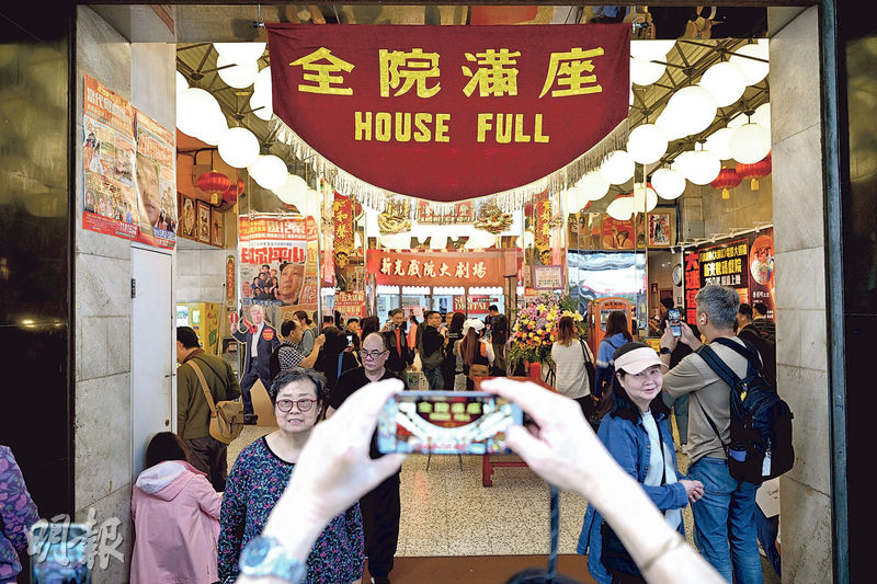 【明報專訊】屹立北角半世紀嘅新光戲院今日(3日)結業。Emily噚日到現場觀察,見到唔少男女老幼都喺度打卡,新光戲院「全院滿座HOUSE FULL」旗、投幣磅重機、門外霓虹招牌等都成為拍攝目標;亦有人喺戲院門前畫畫,記錄新光戲院最後時光。營運新光戲院12年、「盛世天」戲劇團創辦人李居明噚日喺社交平台facebook表示,噚日下晝有40幾名市民一齊到新光畫畫,形容場面感人、香港有情。