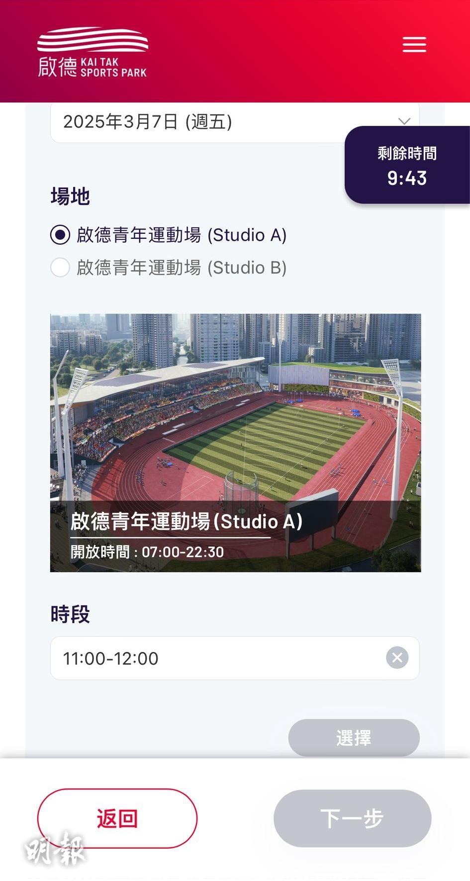 啟德體育園陸續開放租用體育設施,從明天(6日)開始,會員每天早上7時可預訂未來10日內可供租用的設施。據體育園手機程式,首階段開放啟德青年運動場的9條戶外跑步徑及2個室内乒乓球場,跑步徑每節預訂上限300人。體育園已開放讓用戶查看本月5至16日的租用情况,最早可預訂本周五(7日)的時段;至於3月8日、10日、12日暫未開放租用,該3日為全港學界精英足球比賽四強賽、季軍賽及決賽與決賽。
