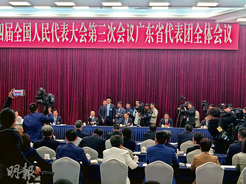 現場互動時,廣州市長郭永航回答記者提問表示,廣州營商環境良好,若記者有意「下海(經商)」歡迎來廣州。早前在深圳兩會輔助攝影記者的外骨骼機器人,昨也出現在北京會場,覃偉中不忘宣傳「歡迎記者朋友試用」。