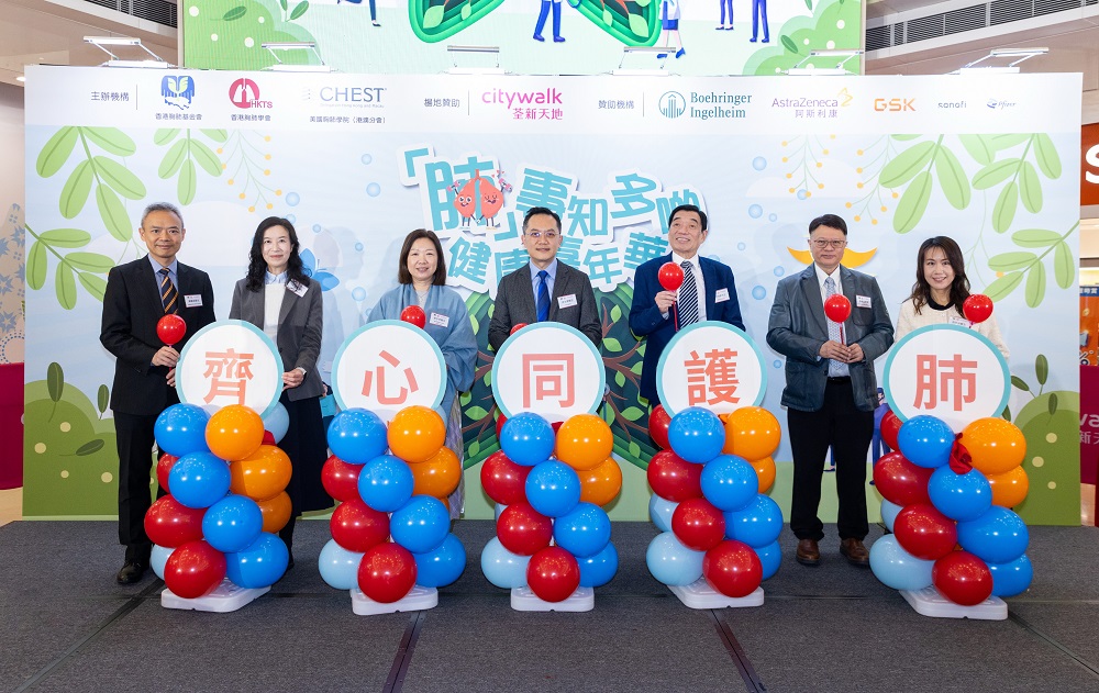 胸肺疾病威脅香港巿民健康,2023年全年有5.6萬人死亡,當中超過三成,即近兩萬人死於胸肺疾病,包括肺癌、肺炎、慢性下呼吸道疾病等,數字驚人。香港胸肺基金會、香港胸肺學會及美國胸肺學院(港澳分會)今明兩天於荃灣荃新天地二期舉行「肺」事知多啲健康嘉年華。開幕禮邀請衞生署長林文健、醫管局主席范鴻齡、醫管局總行政經理(綜合臨牀服務)蔡宇思及中文大學內科及藥物治療學系系主任許樹昌親臨主禮,一起宣揚胸肺健康的重要性。