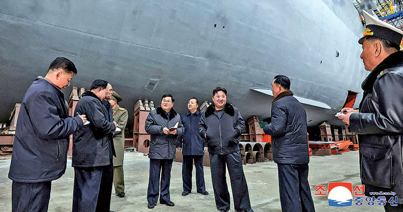【明報專訊】朝鮮上周六(8日)有官媒發表最高領導人金正恩視察重要造船廠的報道,當中提及他現場視察「核動力戰略導彈潛艇」的建造情况,首度對外公開其建造中的核動力潛艇外觀。核動力潛艇擁有比柴油動力的常規潛艇長得多的水底續航力,具有重要的軍事戰略意義。韓國專家擔心,朝鮮能發展核動力潛艇,是受惠於朝俄合作,獲莫斯科輸出技術,帶來更重大的軍事威脅。