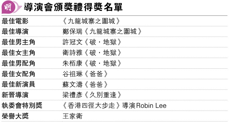 娛樂 導演會頒獎禮得獎名單 發佈於 11 個月 前 2025 年 3 月 11 日 By 明報 【明報專訊】(請看附圖) 相關文章: Up Next 張馳豪盼白色情人節收黑朱古力 詹天文遇心儀對象主動出擊 不要錯過 導演會年度頒獎禮 《九龍城寨之圍城》奪最佳電影 《破.地獄》許冠文衛詩雅稱帝封后 繼續閱讀 贊助商 猜你喜歡