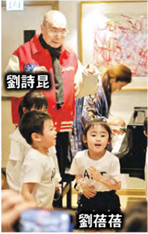 【明報專訊】鋼琴大師劉詩昆本月8日86歲生日,孫穎在鋼琴學院舉行一場藝術表演為老公賀壽。劉詩昆說:「好高興邀請北京、澳門、莫斯科、日本的朋友到來,還有本地和澳門一些小天才,有機會讓他們發揮藝術才華,這次活動太太花了很多心機,我卻沒有太多準備。」4歲女兒劉蓓蓓(貝貝)與歲半兒子劉天天陪爸爸切生日蛋糕,孫穎安排小朋友彈奏生日歌,貝貝帶領其他朋友仔大跳洗腦神曲《APT.》,壽星劉詩昆見眾人跳得興起,忍不住彈鋼琴伴奏,之後在囡囡背後伴舞,活力十足。