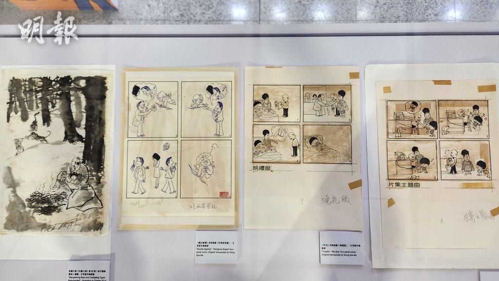香港漫畫家王司馬創作的四格港漫《牛仔》風靡70年代的香港,其作品手稿及經典畫作將於3月14日起在港鐵香港站展出,為40年來首度展出;現場更設1.3米高的「牛仔」雕塑,讓市民近距離打卡。(拍攝:林幸言)